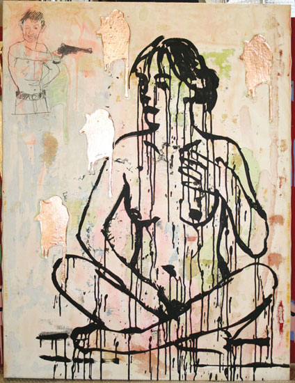 Thema ist immer der mit anderen Menschen interagierende Mensch, denn ED BAGA hat den Anspruch etwas vom Leben und vom Alltag zu erzählen. Vom Comic kommend interessieren ihn Geschichten, die erzählt und gelesen werden können. Darstellungen der Weiblichkeit dominiert dabei sein Oeuvre, denn, so ED BAGA, "Frauen sehen einfach netter aus", und schließlich hat er ja drei Frauen Zuhause.